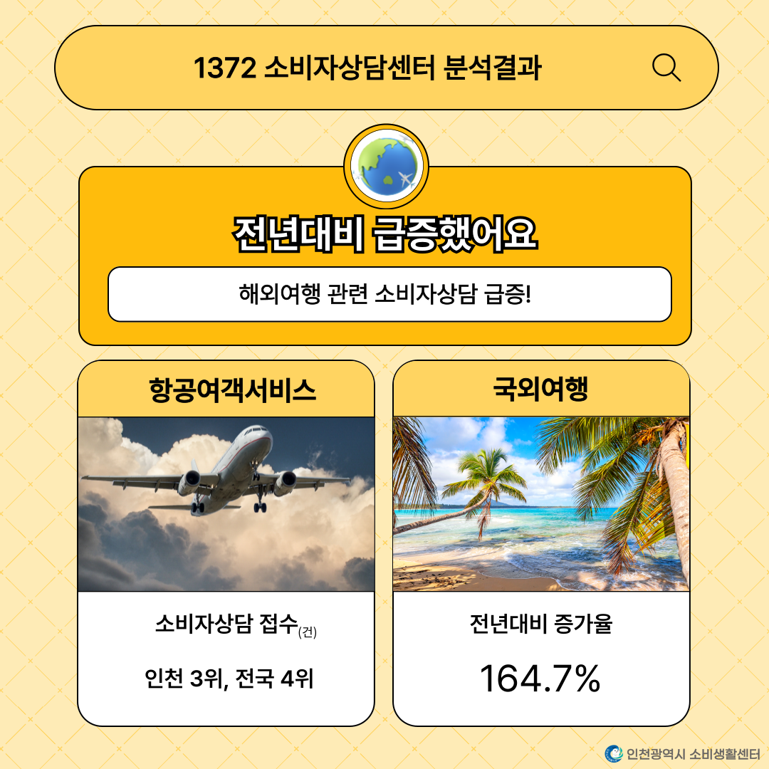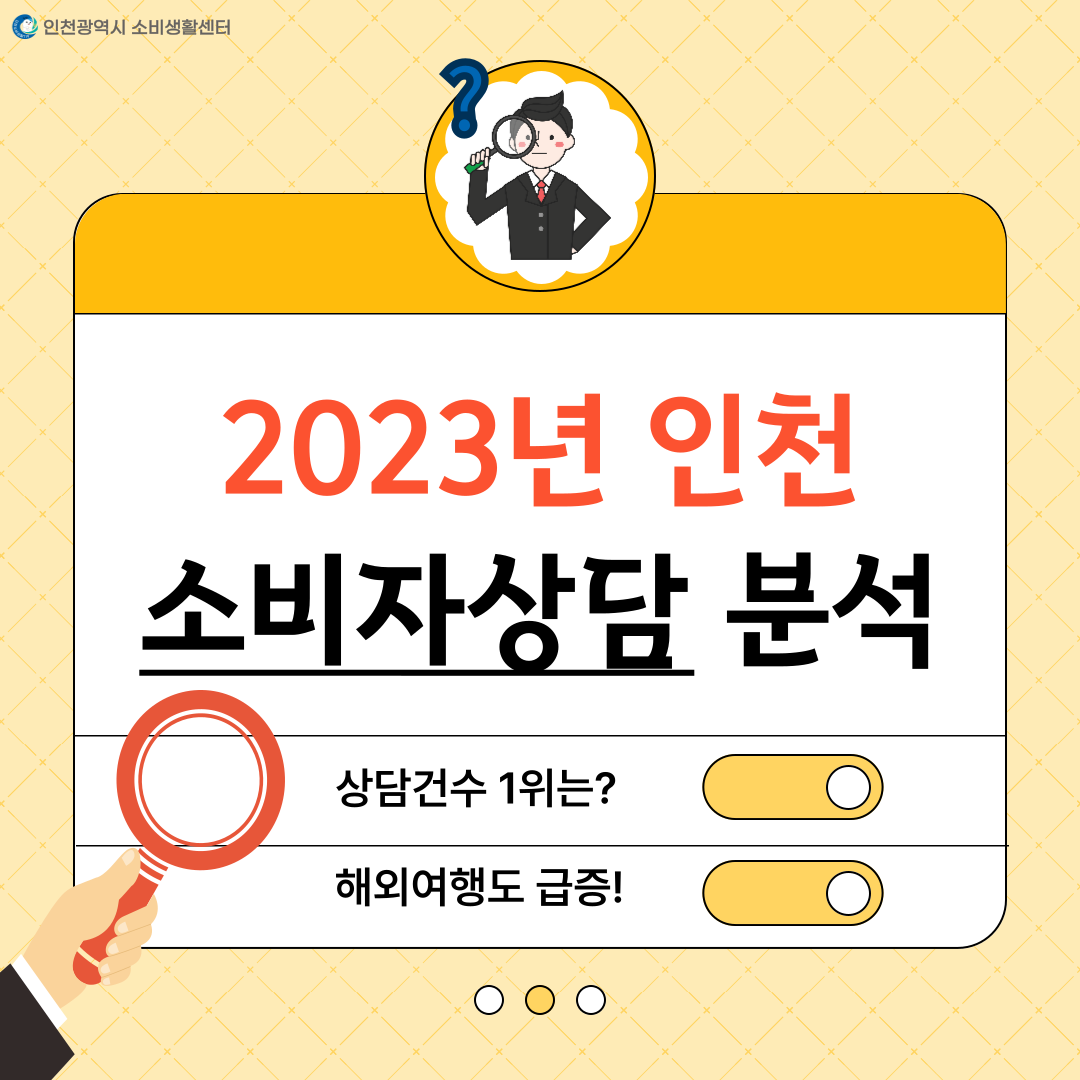 2023년 1372소비자상담센터*에 접수된 인천지역 소비자상담 32,284건에 대한 통계 자료를 분석하고,「2023년 인천광역시 소비자상담 정보 분석」을 발표(2024.4.3.)하였습니다.