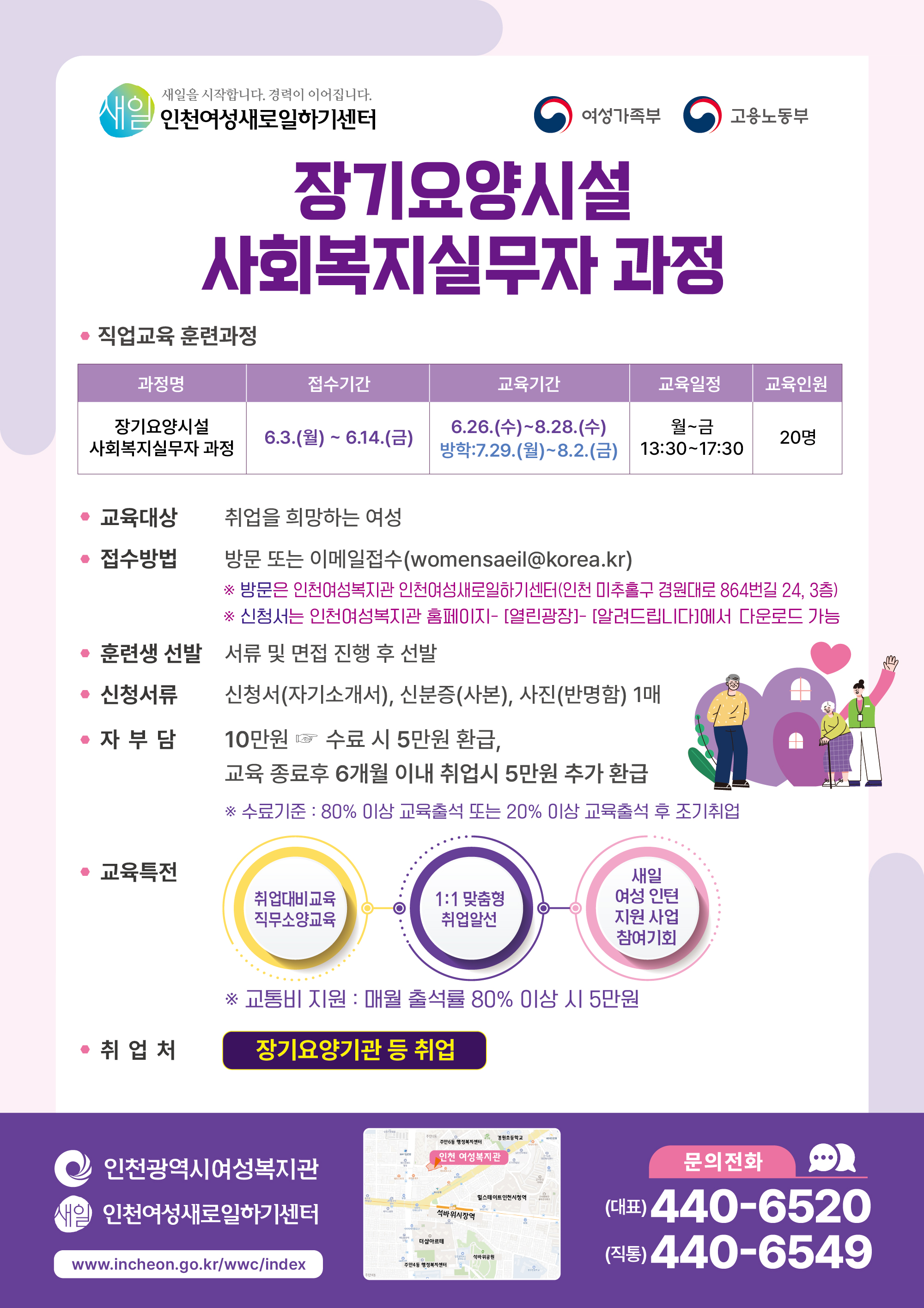 인천광역시여성복지관에서 아래와같이 직업교육 훈련을 시행하오니, 관심있는 구민여러분의 참여바랍니다.
