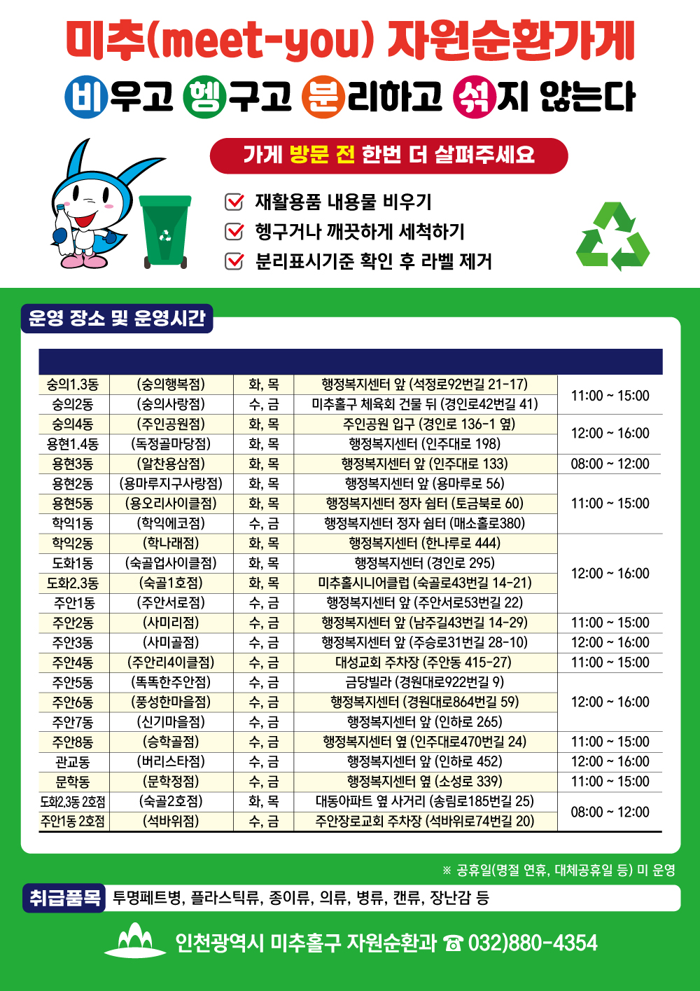2023. 11월 기준 미추자원순환가게 현황입니다.