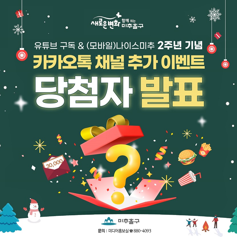 - 이벤트명: 모바일_나이스미추(카카오톡) 2주년 기념 채널추가 및 유튜브(미추홀릭TV) 구독 이벤트