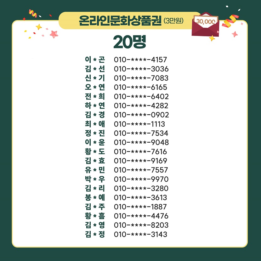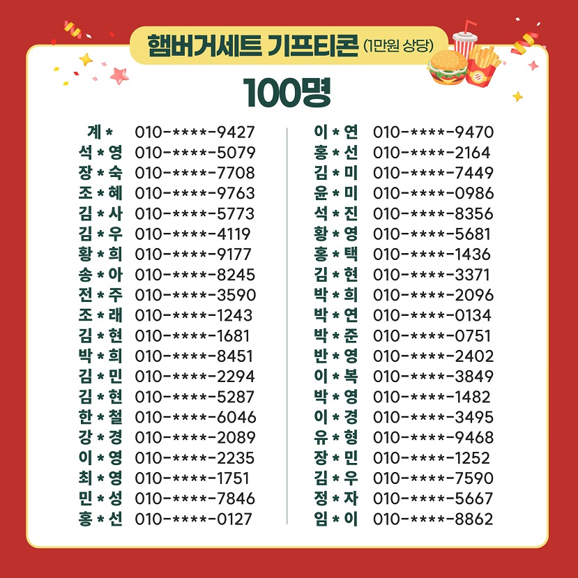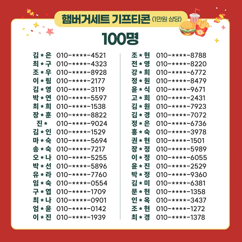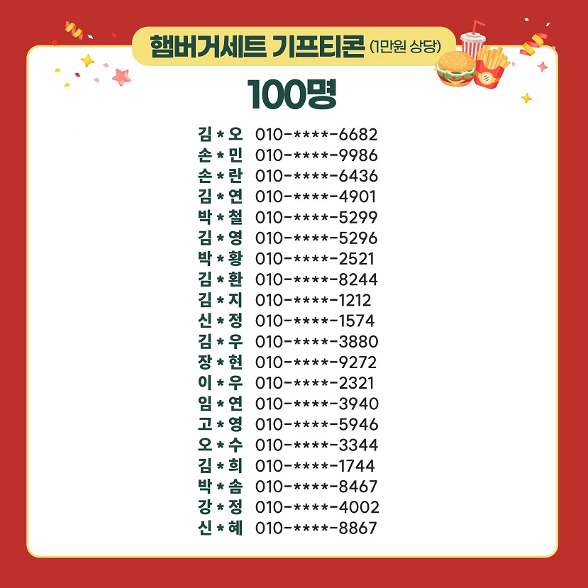 - 경 품: 문화상품권(3만원) 20명, 햄버거세트 기프티콘(1만원) 100명