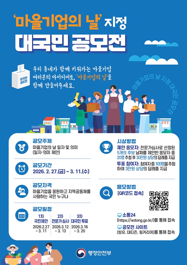 행정안전부에서는 마을기업에 대한 국민의 이해를 높이고, 마을기업 활동을 장려하고자