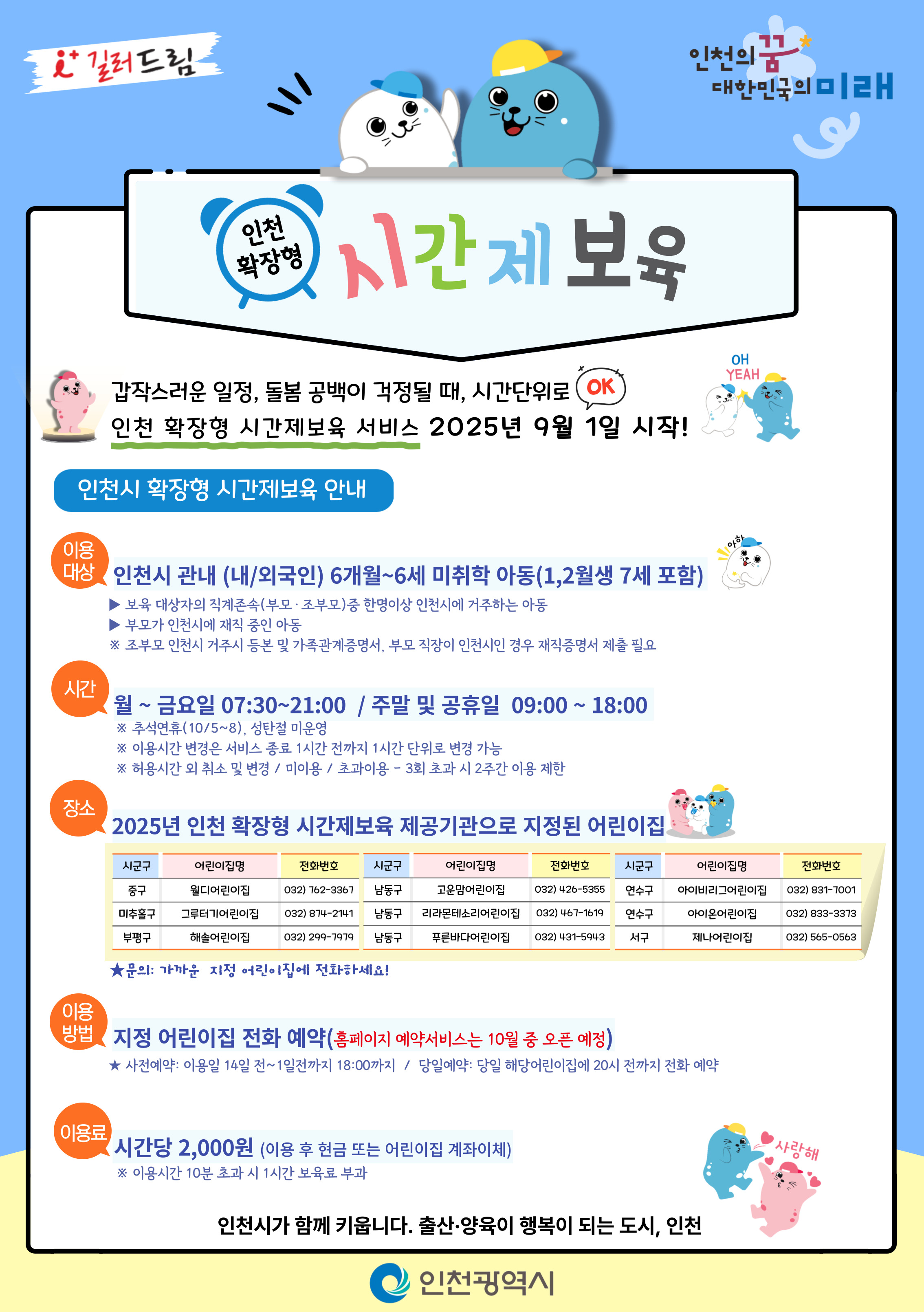 (이용대상) 인천시 관내 (내/외국인) 6개월~6세 미취학 아동(미취학 7세 포함)