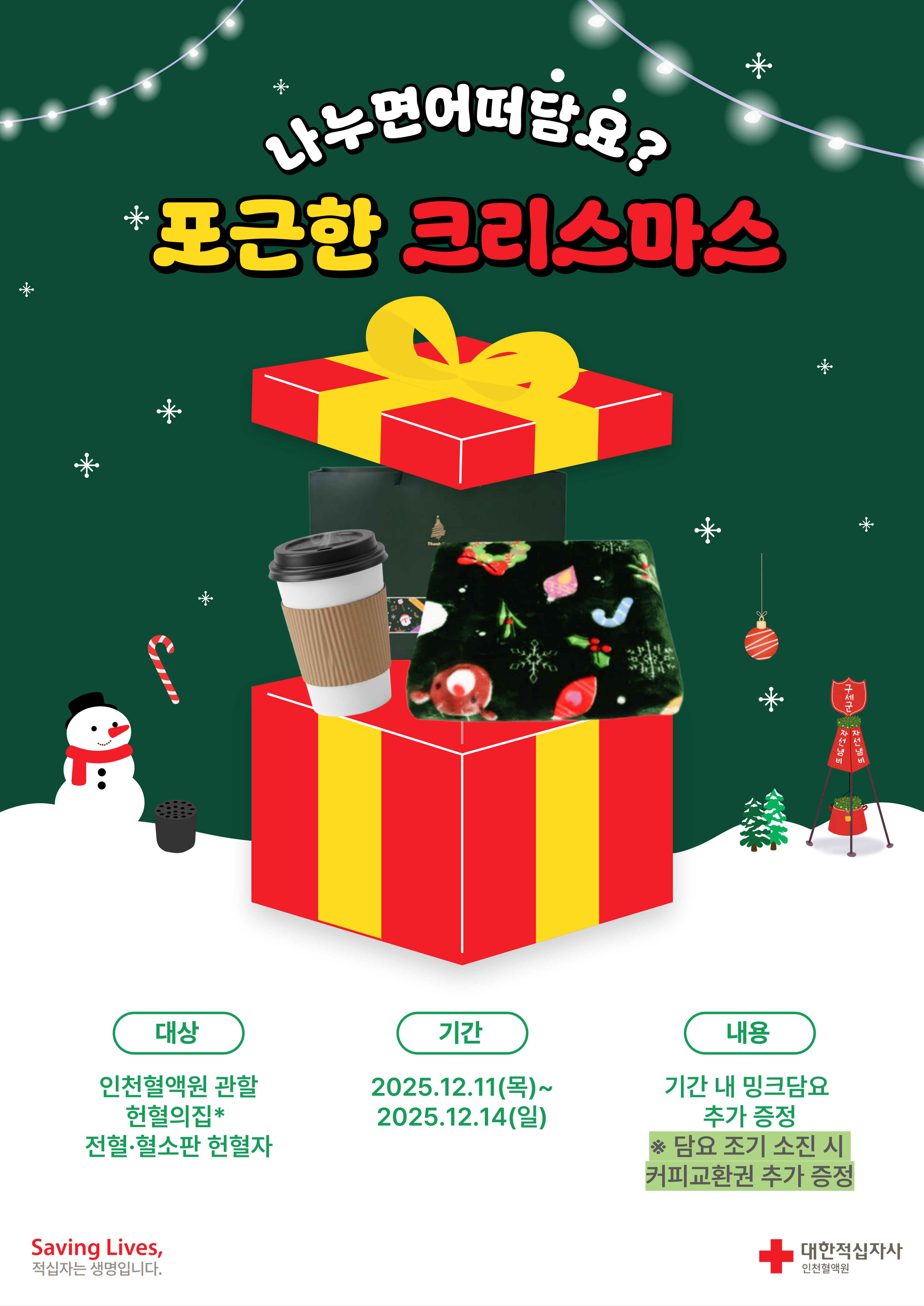 ※ 출처: 대한적십자사 혈액관리본부 홈페이지 [소식&프로모션] > [진행중 프로모션] > [인천 프모로션]