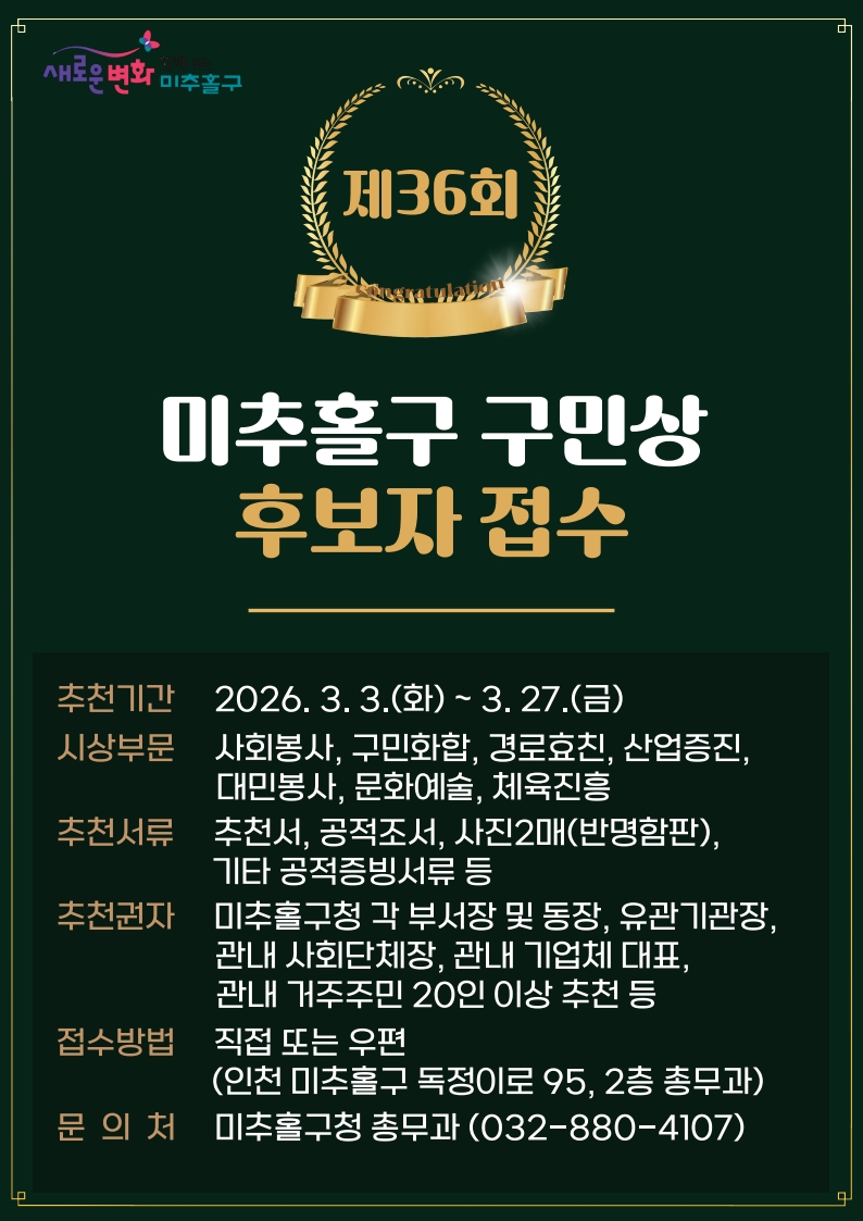 ■ 문의사항 : 인천광역시 미추홀구 총무과(☎ 880 - 4107)