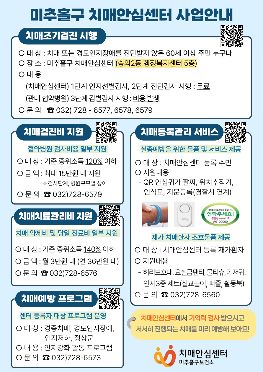 미추홀구 치매안심센터 에서 미리 준비하시고, 치매로부터 자유로워지세요~!