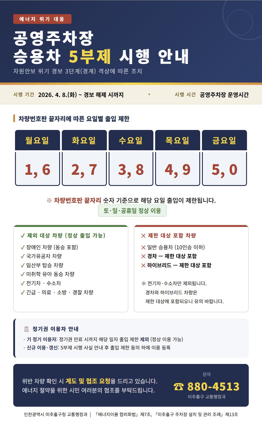 미추홆구 교통행정과(☎ 032 – 880 – 4513)