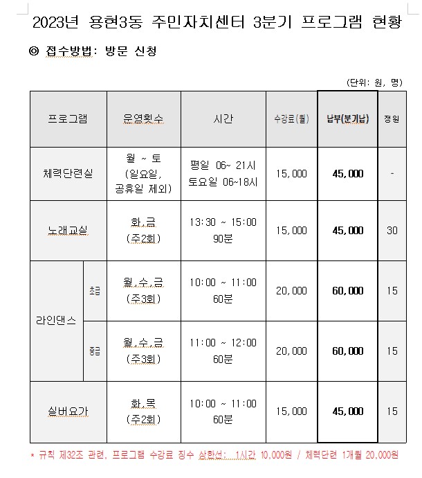 2023년 용현3동 주민자치센터 3분기 프로그램 등록 안내입니다.