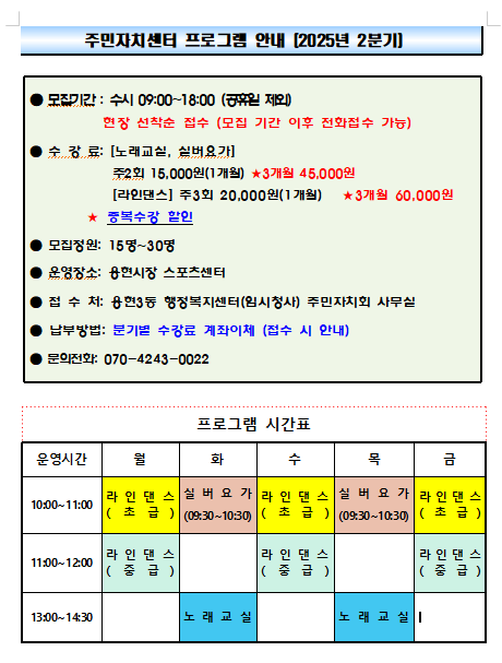 용현3동 주민자치센터 프로그램 운영 현황(2025년 5월)