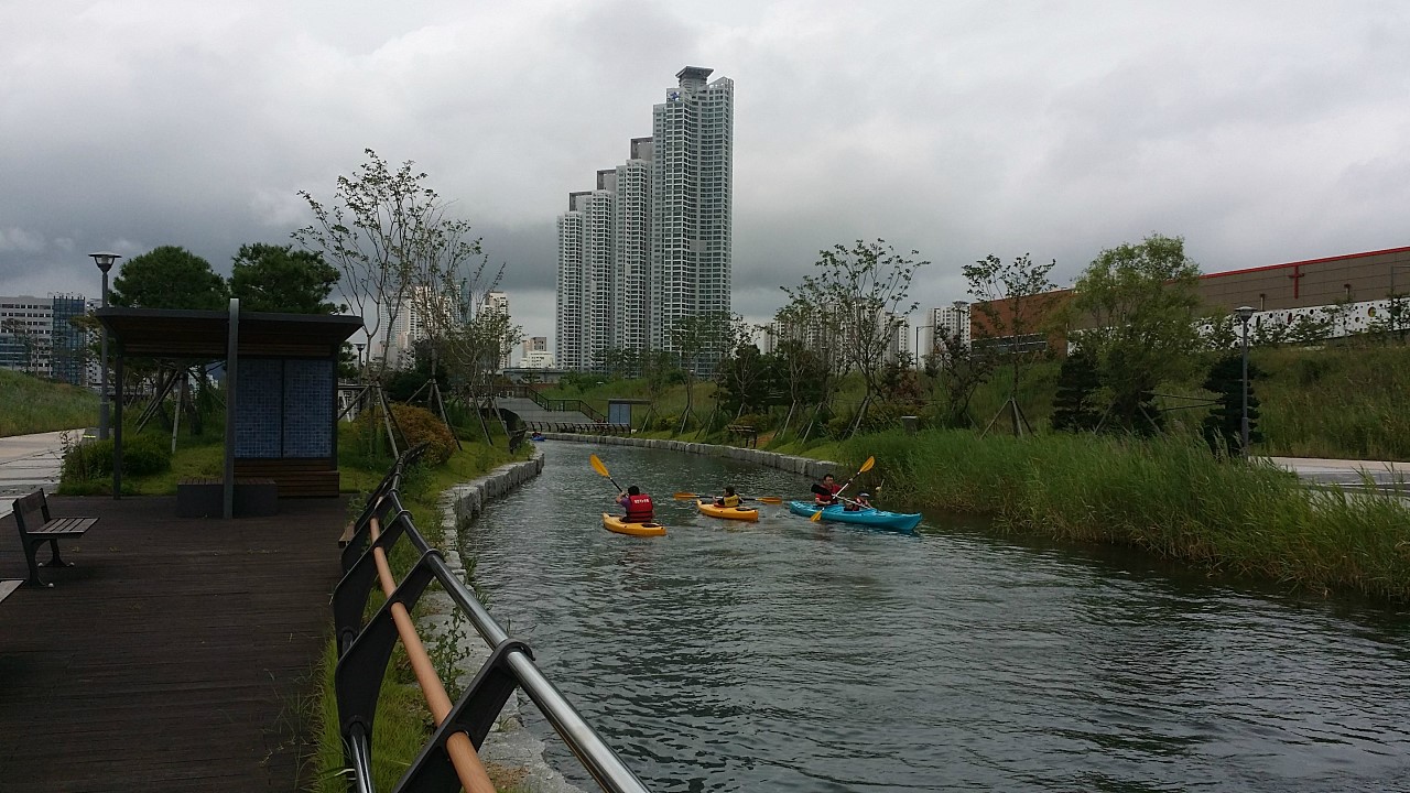 청라의 시작 지점인 동편에서 중심부를 가로질러 시냇물처럼 흐르는 커널웨이는 서쪽 끝에 가서야 멈춘다.