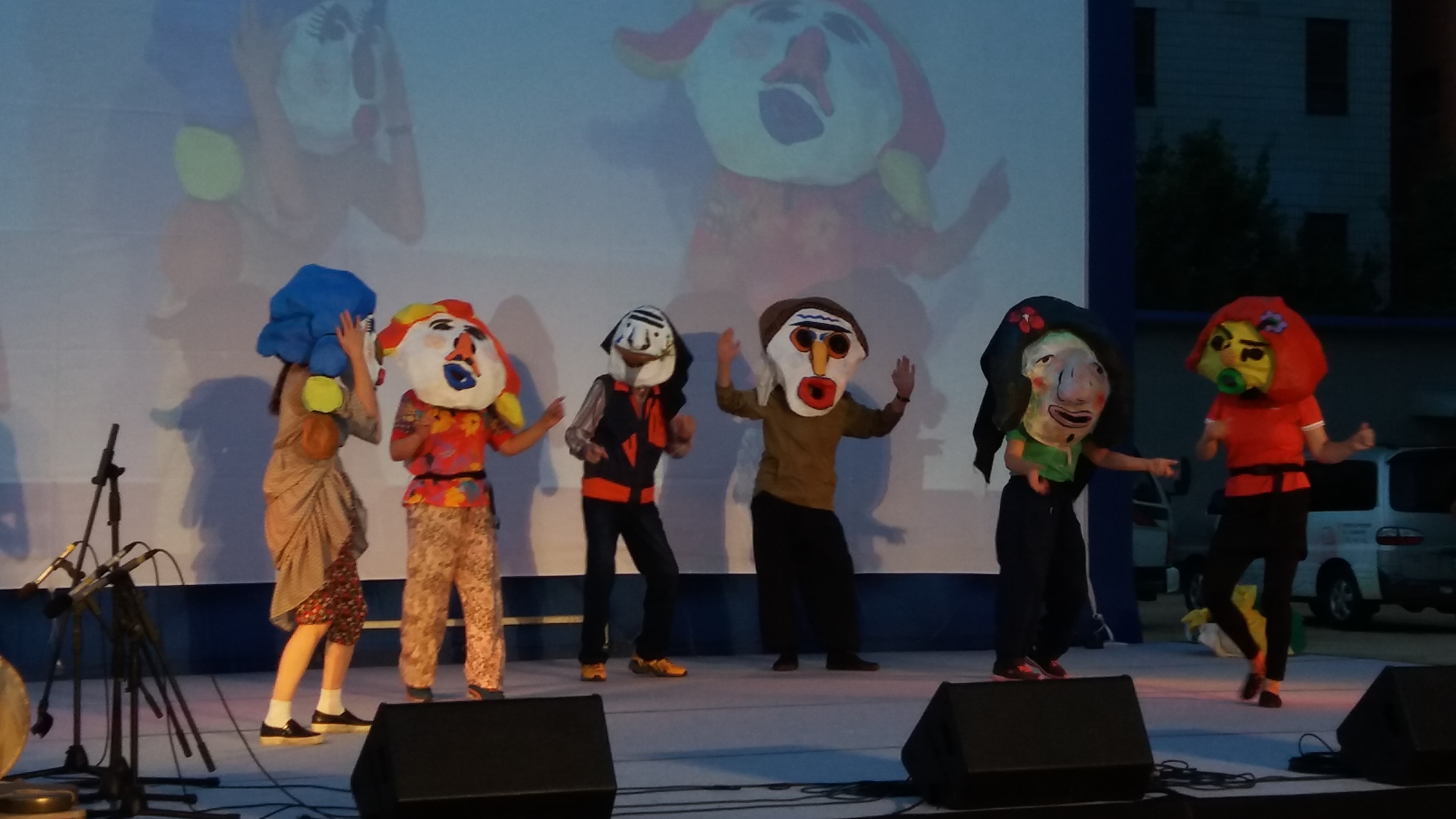 주안8동 통장들이 준비한 마당극은 빨간약이란 제목의 인형극이다. 얼굴보다 더 큰 탈을 쓰고 무대에 올라 관객들의 시선을 붙잡는다.