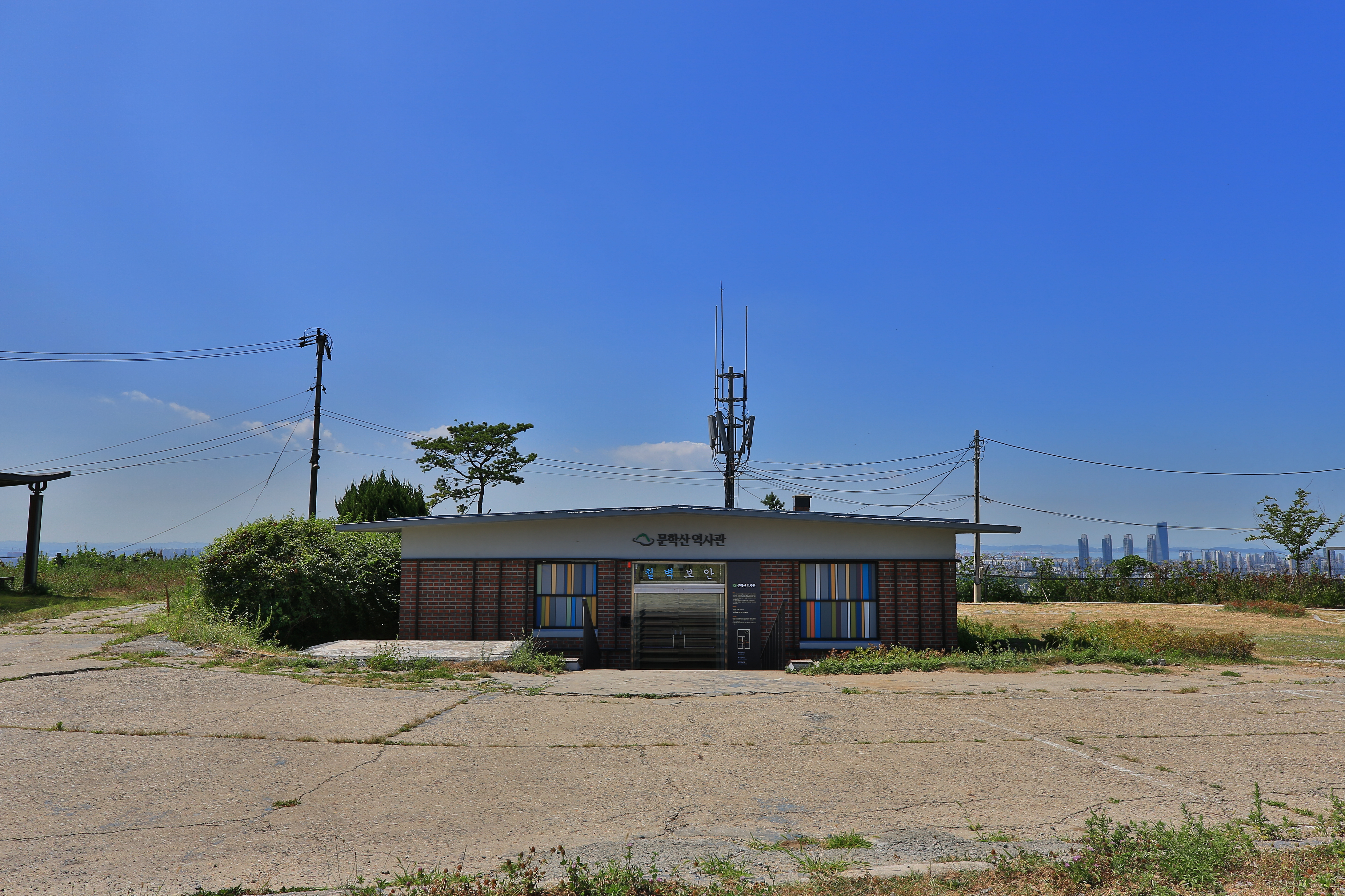 입구로 들어서면 복도 끝에 군부대 통신시설이 공존, 그 경계를 구분 짓는 유리문에는 조선 후기 학자 이규상(1727~1799)의 문학산 예찬 시구가 눈에 들어온다.