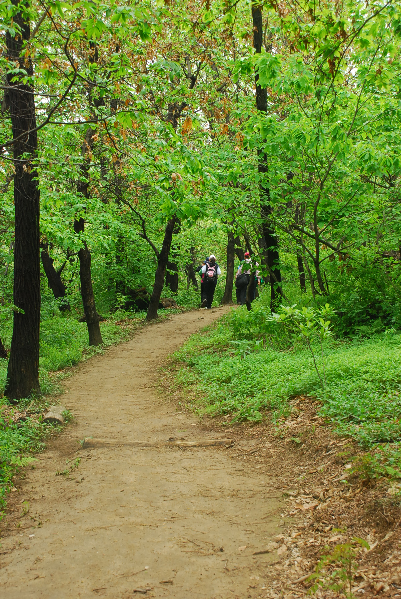 오르는 길이라고 해도 거의 경사가 없는 길이다. 주로 아까시나무, 갈참나무, 밤나무 그리고 잣나무가 하늘을 덮고 있어 이곳은 아주 고즈넉하다. 불과 몇 해 전만해도 사람들이 이 오솔길을 혼자 다니기에는 좀 으스스하다고 할 정도로 인적이 드문 길이었지만 지금은 많이 넓어져서 그런 기분은 들지 않는다. 이어서 잣나무 조림지대가 나온다. 소위 말하는 피톤치드가 풍부한 곳이다.
