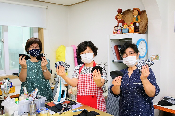 코로나19 감염확산 후에는 마스크도 만들고 있다. 지난 3월 마스크 수급이 불안정했을 당시부터 마스크 확보에 어려움을 겪는 복지 취약계층 주민들을 위해 면 마스크 제작에 적극 동참했다. 완성한 면마스크와 인견마스크를 어르신, 다문화가정, 외국인 노동자 등에 기부했고 방역 일선에서 근무하는 공무원들에게는 방역용 면마스크를 전달했다.