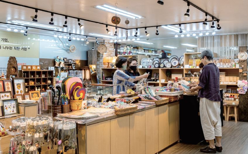 제품은 전통 공예품, 천연 면제품(생리대, 마스크, 에코백), 시계, 원목, 스툴, 테이블, 노인과 장애인용 교구, 자개, 누룽지와 스낵, 천연소금과 쌀, 도서류, 친환경 네일 틴트까지 다양하다. 대부분 생활소품들로 가성비로 따지면 최고다.