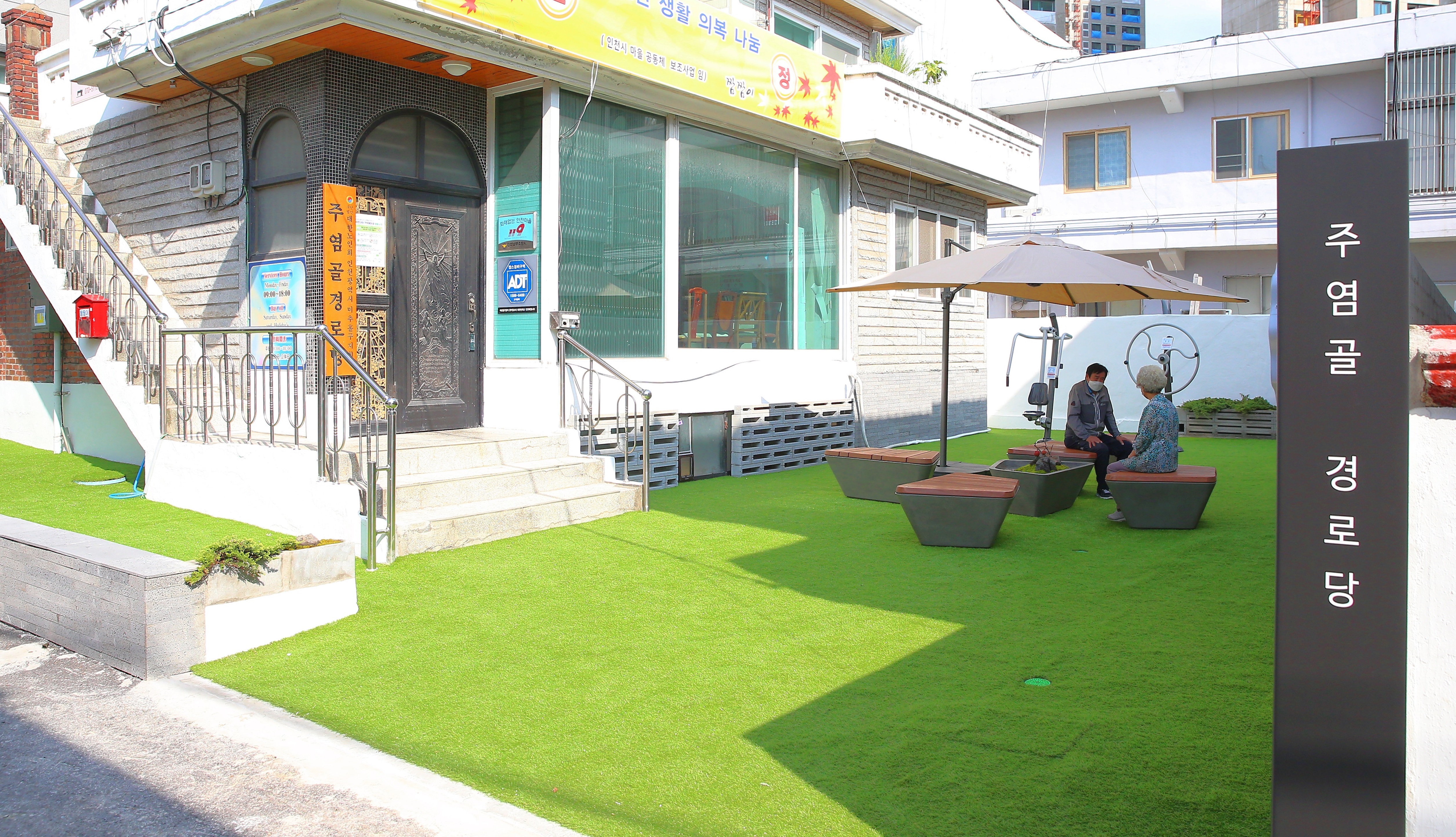 그 결과 주염골 경로당은 지역과 소통하는 공간, 건강과 행복을 돌보는 공간으로 다시 태어났다. 누구나 찾을 수 있도록 담장과 대문을 철거했다. 또 담장형 화단과 조형 벤치, 운동기구도 설치했다.
