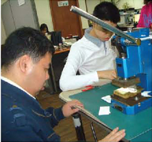 이곳 업체에서 제작된 명함은 한장 한장 모두 수작업으로 이루어지고 있다. 디자인과 인쇄를 하고 핀 작업을 거쳐 점자를 인쇄, 검수 후 포장, 그리고 배송이다.