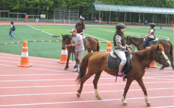 인 1조로 한 달에 두 번 이루어지는 승마교실은 안산에서 직접 경주용 말이 학교로 특별차를 타고 여행을 온다. 기수로 활동하던 김진열 강사가 특별히 학생들을 지도하며 보조 말 1필에 보조교사 1인이 꼭 붙어 있다.