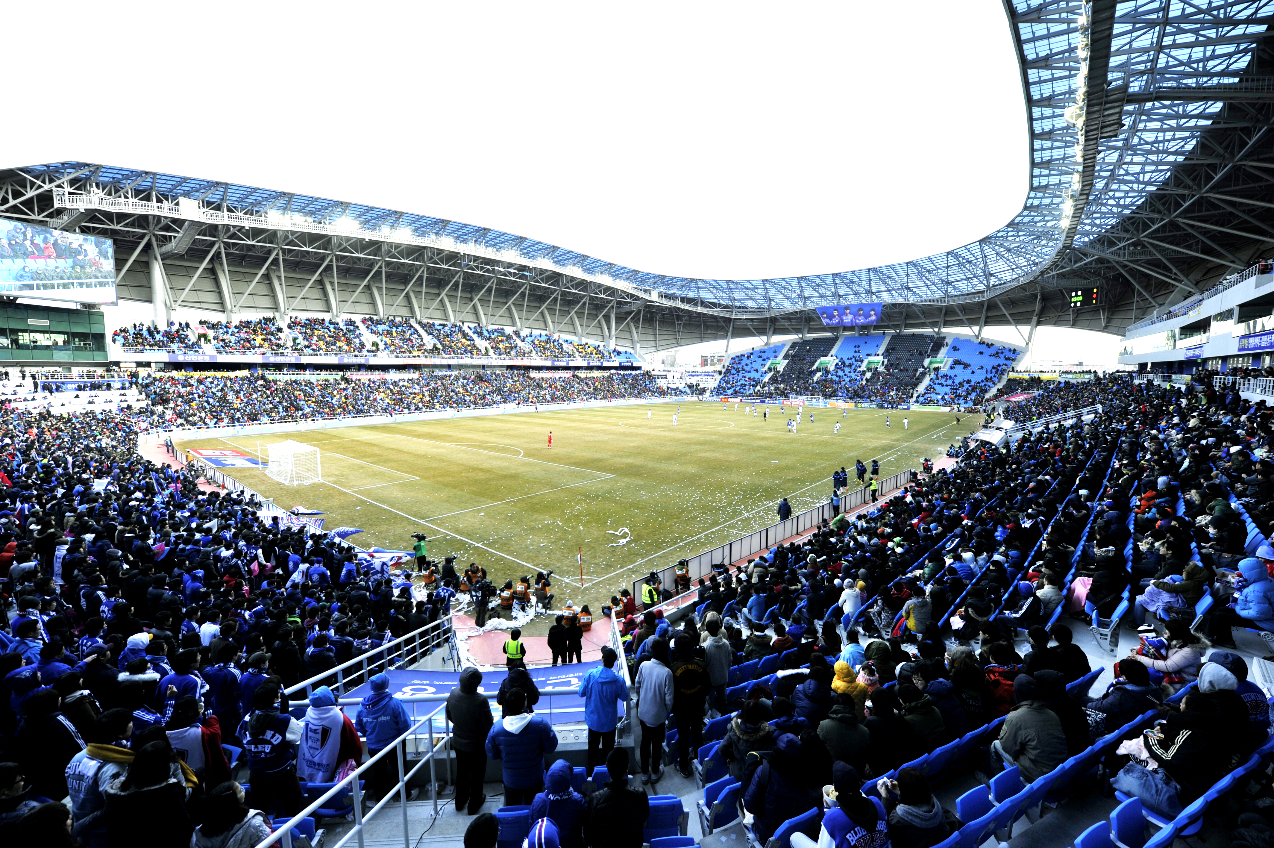 특히 영국 프리미어리그처럼 우리 선수들이 득점하거나 승리할 경우 관중의 품으로 뛰어 들어 함께 기뻐할 수도 있고 골 세레머니를 관중과 함께 할 수 있다는 점은 다른 구단이나 팬들이 부러워하는 점이다. 경기장과 관중석의 거리가 최소 1m, 최대 6m로 2천여 대를 주차할 수 있는 주차장은 이곳만의 자랑이다.