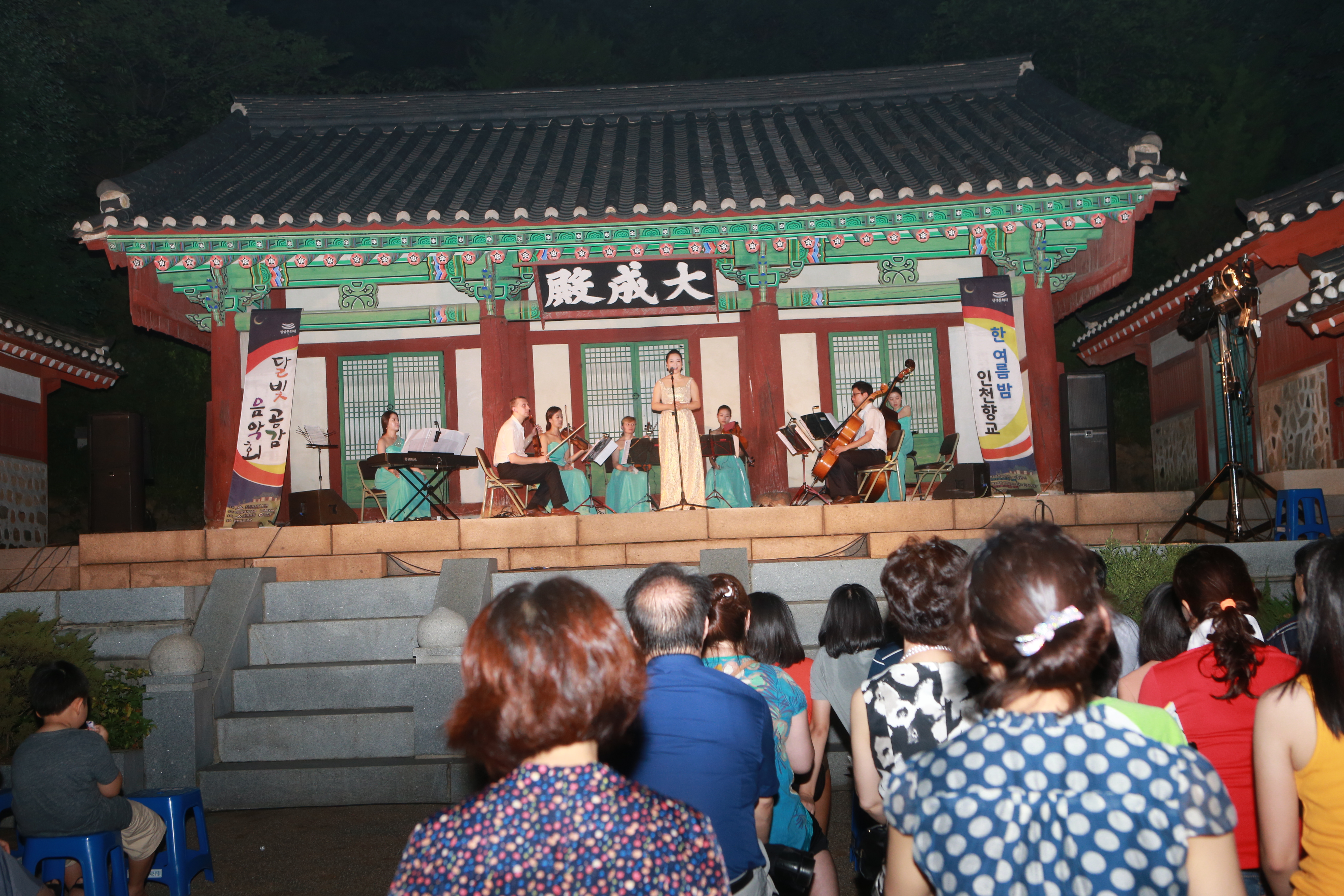 음악회 주제는 ‘향교에서 피어나는 여름향기’로 메인 공연팀인 현악 앙상블 i-신포니에타의 클래식·팝·가요 연주, 게스트 소프라노 이선린과 해금 연주자 윤아림의 협연이 여름밤의 인천향교를 달빛 공감 음악의 향연으로 물들였다.
