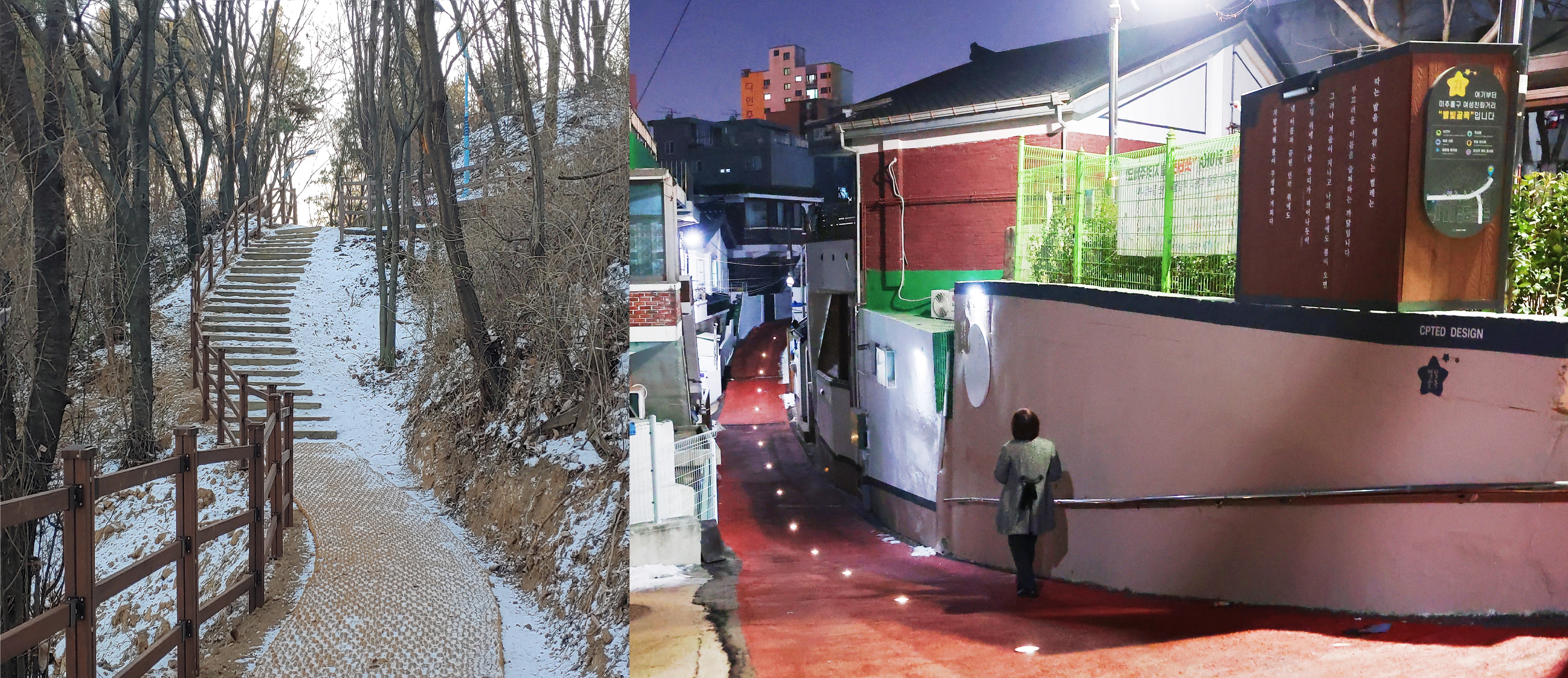 건강을 위해 산책에 나선 미추홀구민에게 반가운 소식이 있다. 구는 구민의 안전과 아름다운 거리 조성을 위해 수봉공원 친환경 산책로 정비사업과 도화1동 별빛골목 조성을 완료했다.