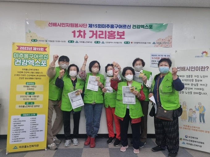 미추홀노인복지관에 들어서면 왼쪽 안내 데스크에 부드러운 미소와 친절한 목소리의 어르신이 동년배들을 맞이하고 있다. 그 주인공은 바로 미추홀노인복지관 동아리 ‘거북이봉사단’이다. 거북이봉사단은 미추홀구 경로당 회장들의 작은 봉사로부터 시작된 단체로, 복지관 이용 안내부터 복지관 사업 홍보, 환경미화, 응원캠페인 활동 등을 통해 긍정적인 노인상을 보여주고 미추홀노인복지관이 지역사회에서 자리매김할 수 있도록 다양한 활동을 하고 있다. 거북이봉사단의 활동을 살펴보면 환경미화, 거리 홍보, 지역주민 나눔 활동 등이 있다. 환경미화 활동은 연 4회 복지관 내 외부를 깨끗이 하며 복지관 이용 어르신들 스스로 모범을 보이고 솔선수범하는 것이다. 올해 환경미화 1차 시에는 복지관 프로그램실인 바둑실, 장기실, 서예실 등을 깨끗이 청소했다. 거리 홍보 활동은 연 2회로 복지관 사업을 지역주민에게 홍보함으로써 적극적인 참여를 유도하는 것이다. 2023년 1차는 지난 5월 신기시장 일대에서 지역주민 200명에게 ‘미추홀구 어르신 건강엑스포’ 사업을 홍보했다. 지역주민 나눔 활동은 연 2회로 올해 1차는 지난 4월14일 인하대학교 학생 150명을 대상으로 활동했다. 주제는 선배 시민이 후배 시민에게 전달하는 응원이었다. 중간고사로 지친 학생들을 위해 에너지바를 준비했고, 어르신들이 직접 작성한 자필 응원 메시지를 함께 전달하며 끈끈한 정으로 학생들을 격려했다.