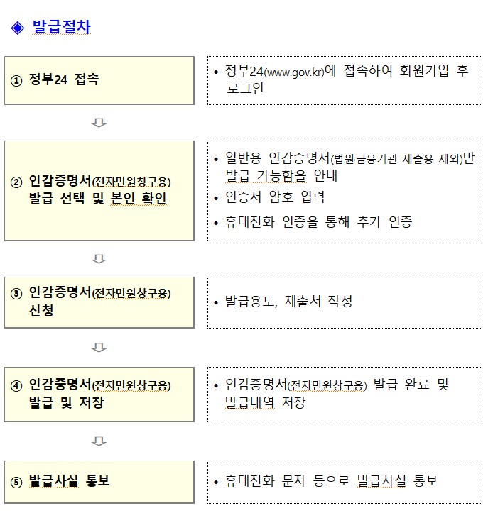 본인 확인용이나 거래 의사 확인용으로 쓰이는 인감증명서는 일상생활에서 생각보다 큰 비중을 차지하지만, 발급을 위해서는 직접 발급기관을 방문해야 하는 불편함이 있었다. 최근 행정안전부의 「인감증명법 시행령」 일부개정에 따라 9월30일부터 일반용 인감증명서 중 법원이나 금융기관에 제출하는 용도가 아닌 인감증명서는 전자민원창구(정부24)에서 무료 발급이 시행될 예정이다.