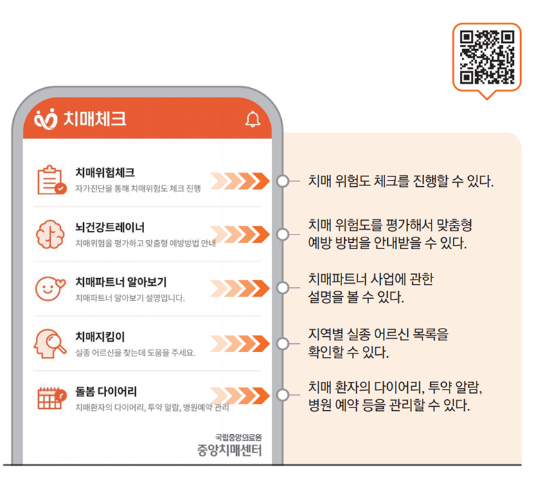 ‘치매체크’ 앱은 휴대전화의 구글 플레이스토어, 앱스토어에서 ‘치매체크’ 검색 후 무료로 설치할 수 있다. 첫 페이지는 치매위험체크, 뇌건강트레이너, 치매파트너 알아보기, 치매지킴이, 돌봄 다이어리로 구성돼 있으며, 원하는 메뉴를 선택해 진단하고 결과를 받아볼 수 있다. ‘치매안심’ 앱은 치매안심센터를 직접 방문해서 검진을 받을 시간이 없는 바쁜 현대인과 외출이 어려운 어르신들이 집에서도 편리하게 치매 위험도를 체크하고, 치매 예방 수칙을 참고하기에 도움이 될 것으로 기대한다. 한편, 우리 구 치매안심센터에서는 치매선별검사를 무료로 진행하고 있다. 자세한 사항은 미추홀구 치매안심센터(☎ 728-6520)로 문의하면 된다.