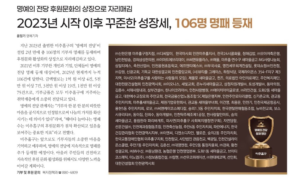 2023년 시작 이후 꾸준한 성장세, 106명 명패 등재