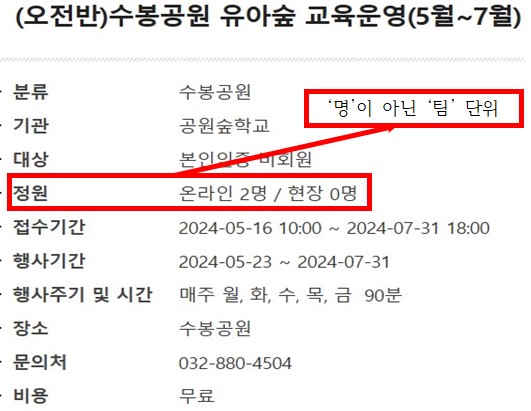 5월 ~ 7월 수봉공원 유아숲 교육 프로그램 오전반 신청